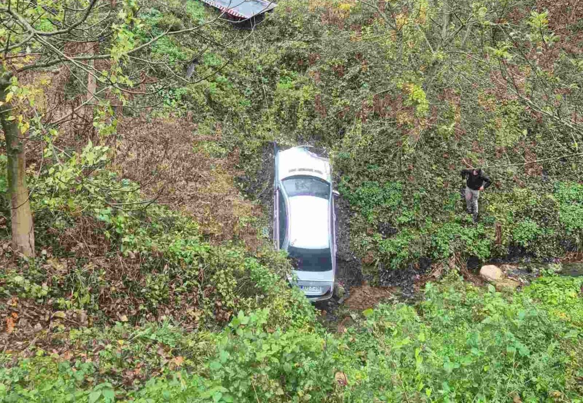 Umjesto da skrene ulijevo, automobil je nastavio ravno i sletio u provaliju duboku oko 20 metara, gdje je završio na boku, u blizini potoka i šumskog raslinja.