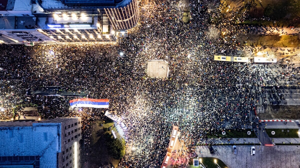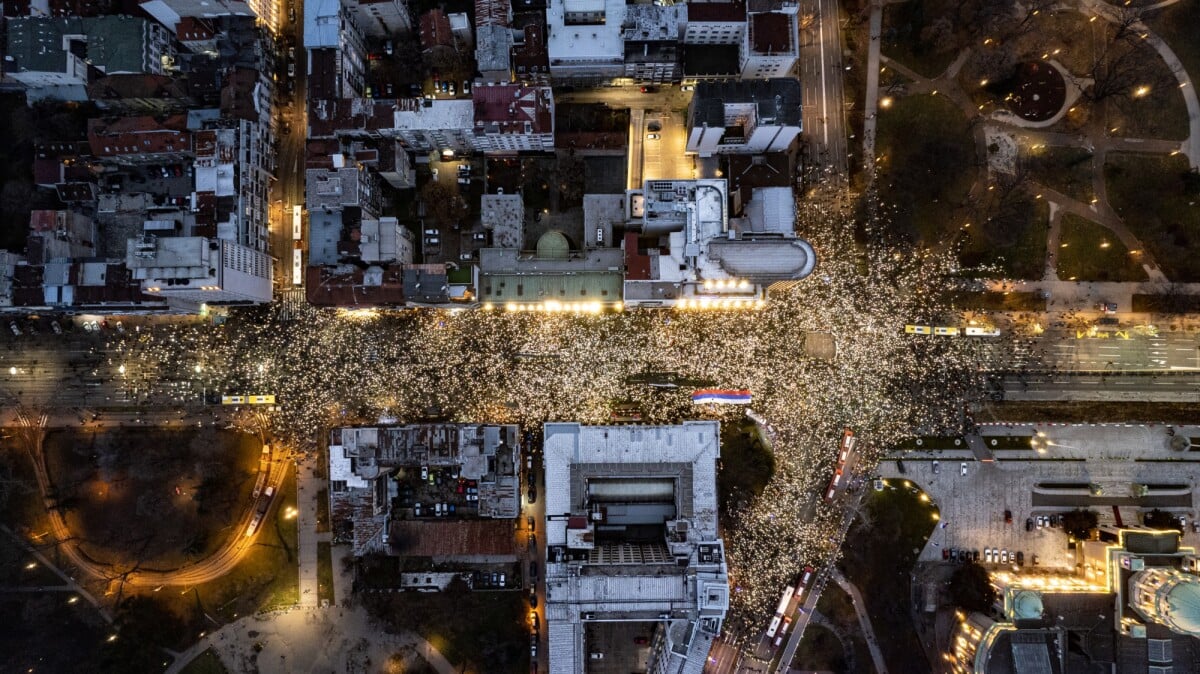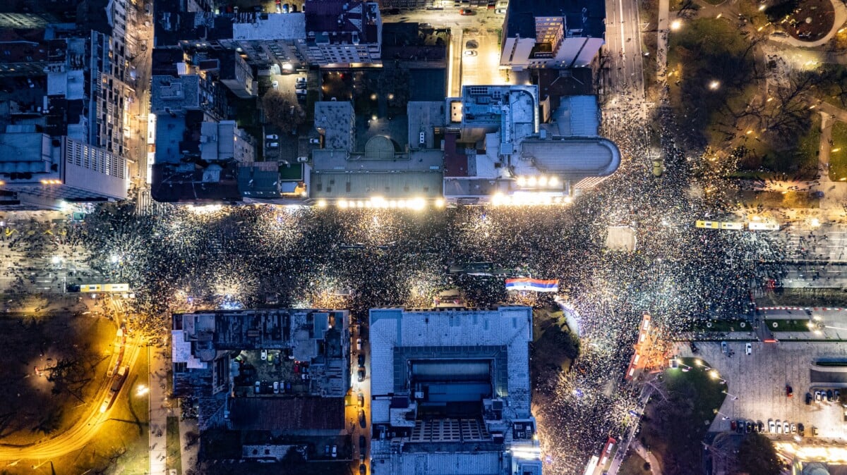Arhiv javnih skupova, organizacija koja se bavi analizom svih skupova i prosvjeda u Srbiji i regiji, objavila je fotografije prosvjeda iz zraka na kojima se može vidjeti kako se u glavnom gradu Srbije ponovno okupio veliki broj ljudi koji traže pravdu.