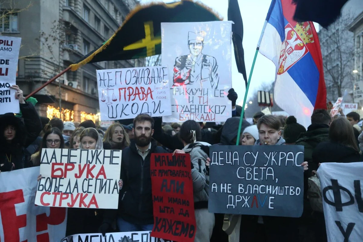 Desetine tisuća prosvjednika okupilo se sinoć u Beogradu ispred zgrade Ustavnog suda Srbije u nastavku borbe u kojoj se traži utvrđivanje političke i kaznene odgovornosti za nesreću u Novom Sadu, a u kojoj je u padu nadstrešnice na autobuskoj stanici poginulo 15 osoba.