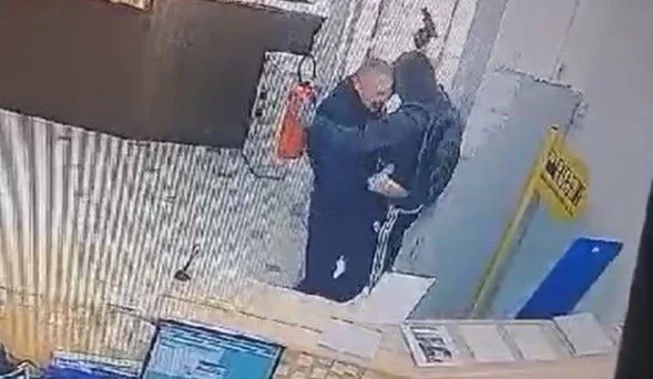 Na snimci se vidi borba zaštitara i pljačkaša, nakon čega je razbojnik uspio pobjeći.