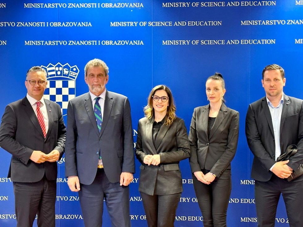 U petak 12. svibnja 2023. godine održan je radni sastanak Ministrice obrazovanja, znanosti, kulture i športa Županije Zapadnohercegovačke Daniele Perić i Rektora Sveučilišta u Mostaru prof. dr. sc. Zorana Tomića s Ministrom znanosti i obrazovanja Republike Hrvatske prof. dr. sc. Radovanom Fuksom i državnom tajnicom doc. dr. sc. Ivom Ivanković.