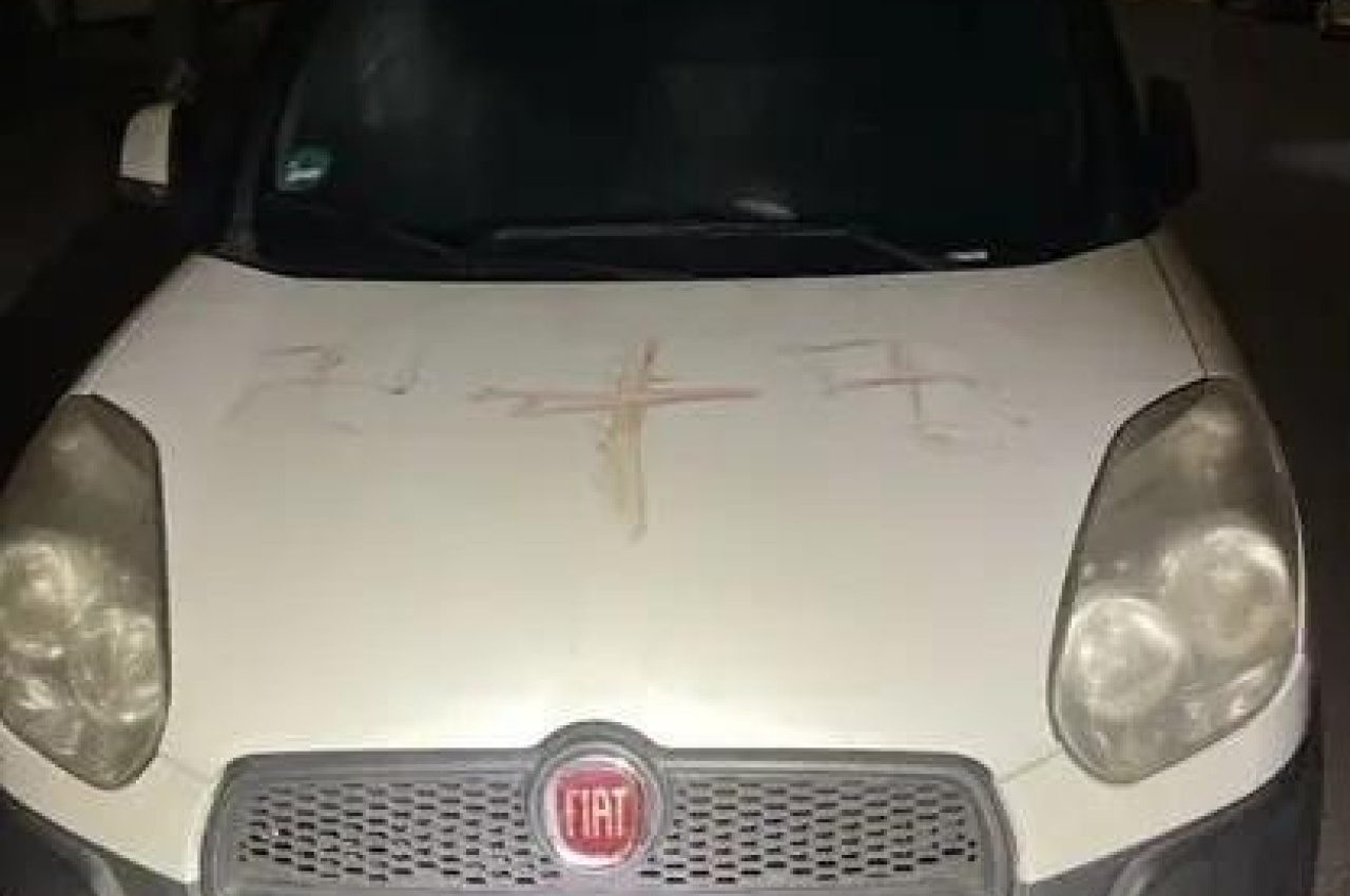 Policija je priopćila da je sve počelo kada je u srijedu kasno navečer jedan muškarac prijavio kako je na haubi svojeg parkiranog automobila primijetio crvenkastu tekućinu, a na njoj nacrtan kukasti križ.
