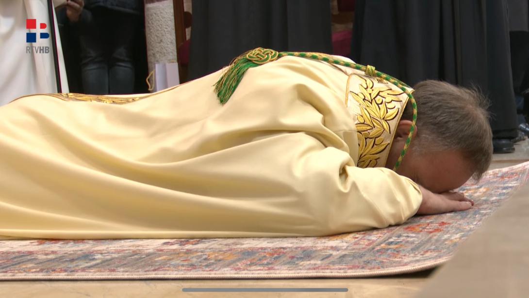 Dok je ređenik ležao na tlu pred oltarom, biskupi, svećenici, redovnici, redovnice i sav puk pjevali su Litanije svih svetih.