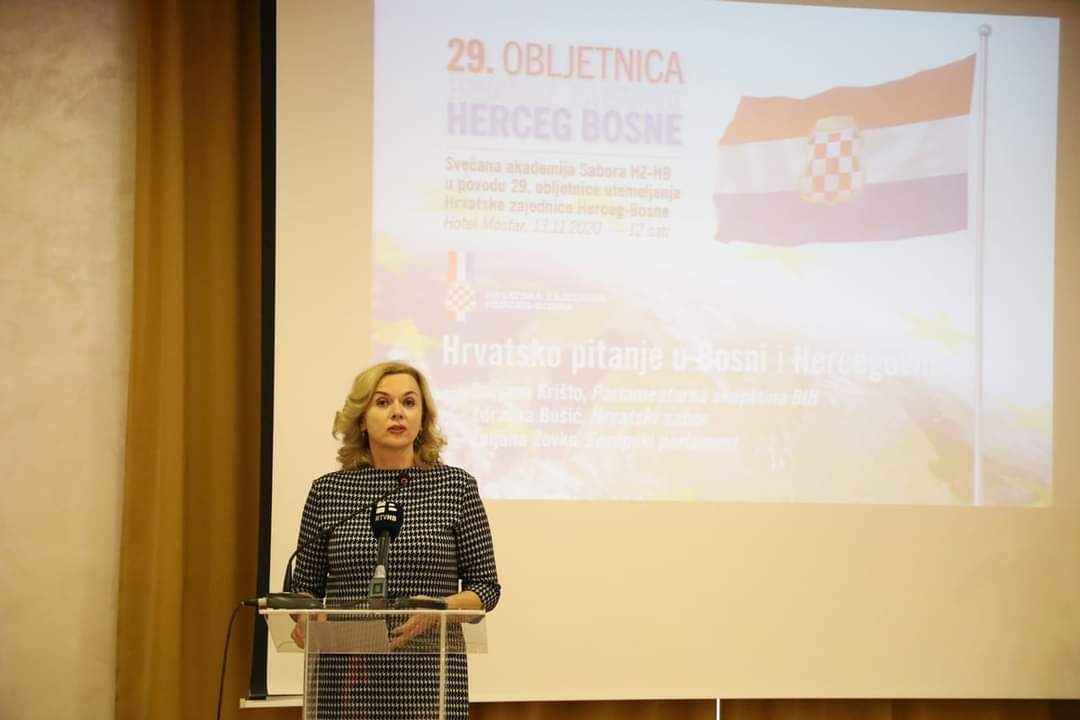 Preko video linka nazočnima se obratila i zamjenica predsjednika HDZ-a BiH i zamjenica predsjedatelja Zastupničkog doma PS BiH Borjana Krišto uspoređujući kontekst okolnosti stvaranja HZ HB i aktualnih događanja vezanih za Izborni zakon BiH kao nužnog pitanja vezanog za funkcionalnost BiH. „Sigurno je da bez HZ HB te kasnije HR HB i Hrvatsko vijeća obrane ne bi bilo moguće obraniti prostore gdje žive Hrvati i da uopće ne bi bilo moguće sačuvati cjelovitu BiH, kao ni slobodu hrvatskog naroda“.