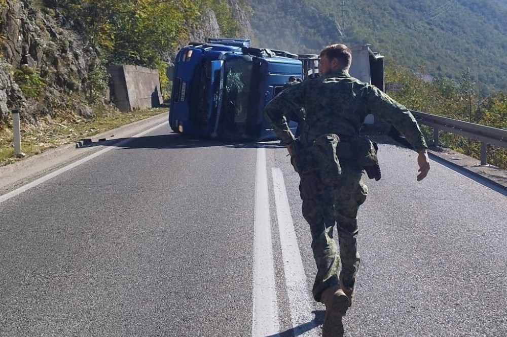 Kamion se prevrnuo nakon što je vozač pokušao da izbjegne vozilo nesavjesnog vozača koji je preticao drugo vozilo, a koji je pobjegao s mjesta nesreće odmah nakon što se ona desila.