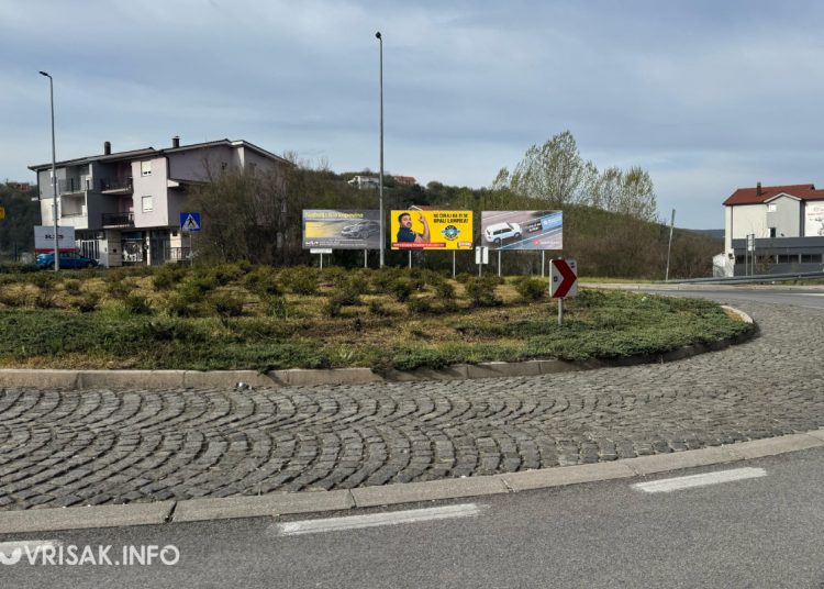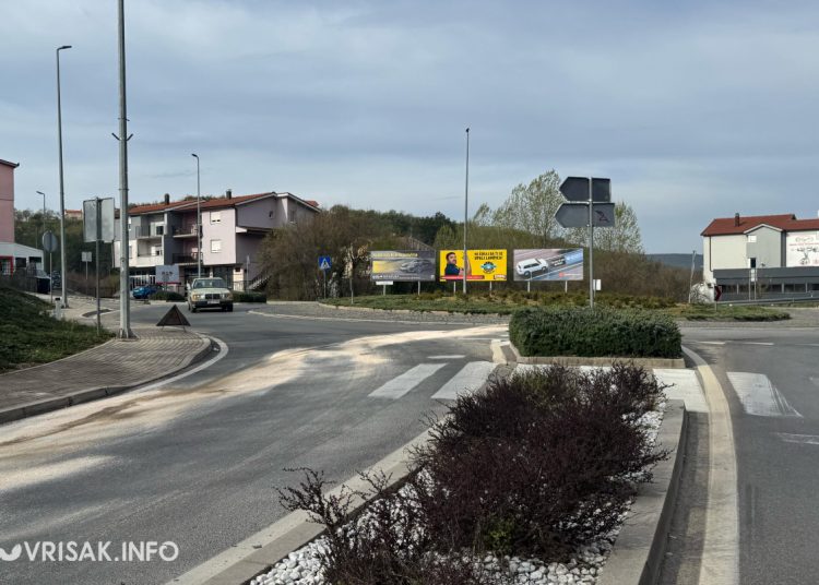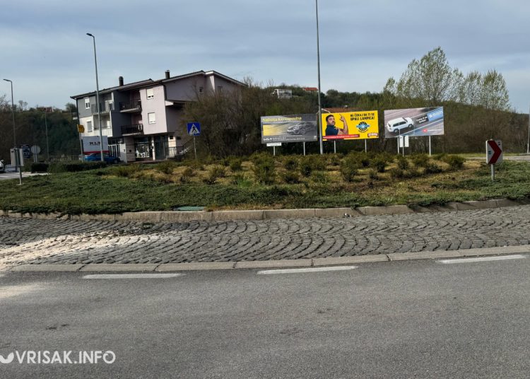 Kako se može vidjeti na fotografijama s mjesta događaja, automobil je doslovno “preletio” središnji dio kružnog toka, pri čemu su nastala vidljiva oštećenja na kolniku i obližnjem prometnom znaku.